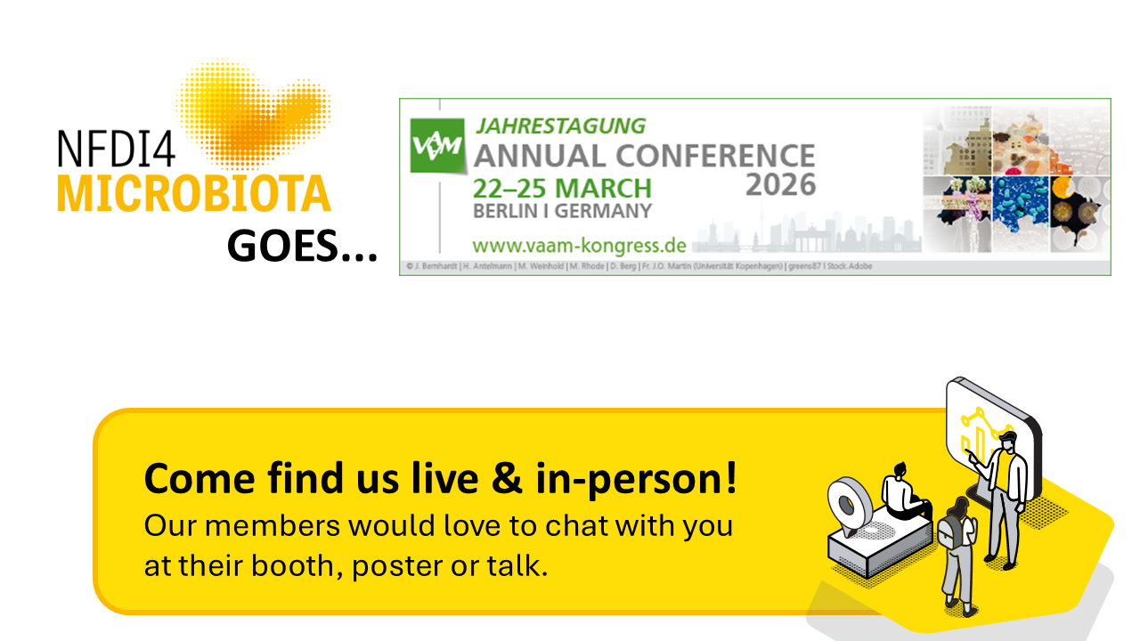 As a part of the Nationale Forschungsdaten Infrastruktur (NFDI), NFDI4Microbiota supports the microbiology community with access to data, analysis services, data/metadata standards, and training.